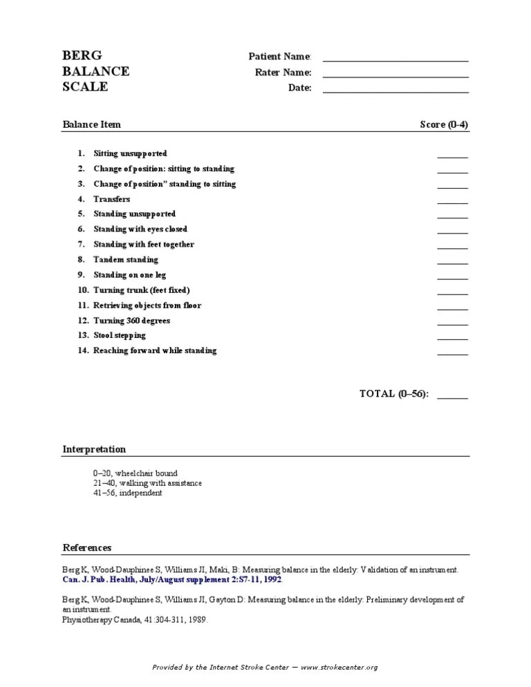 Berg Balance Scale Form Fill Out, Sign Online and Download PDF